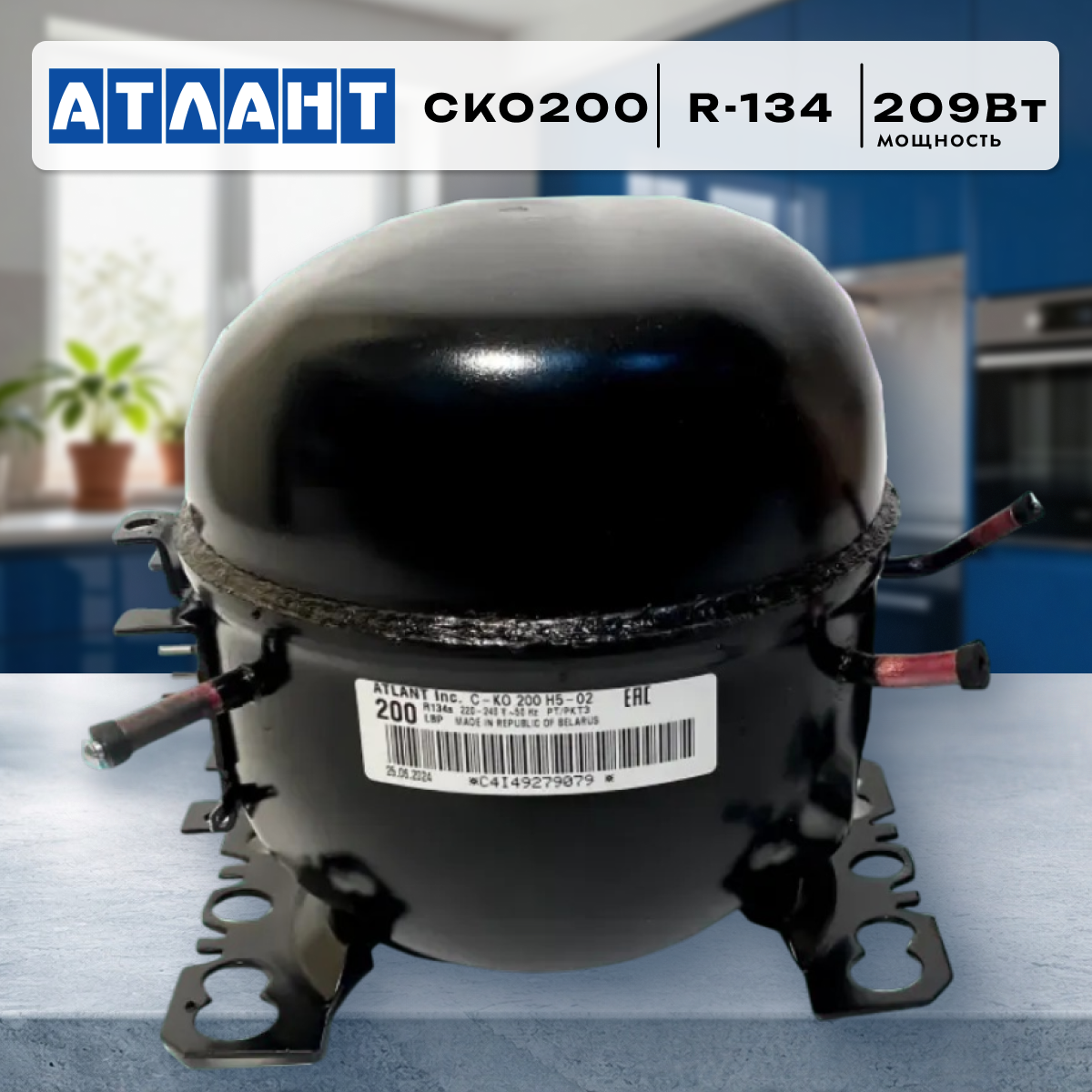Компрессор Атлант СКО200 — надёжный компонент для холодильников производства «Атлант». Работает на хладагенте R‑134, мощность составляет 209 Вт. Модель Н502 разработана для стабильной работы в составе бытовых холодильных установок. Отличается долговечностью и энергоэффективностью.