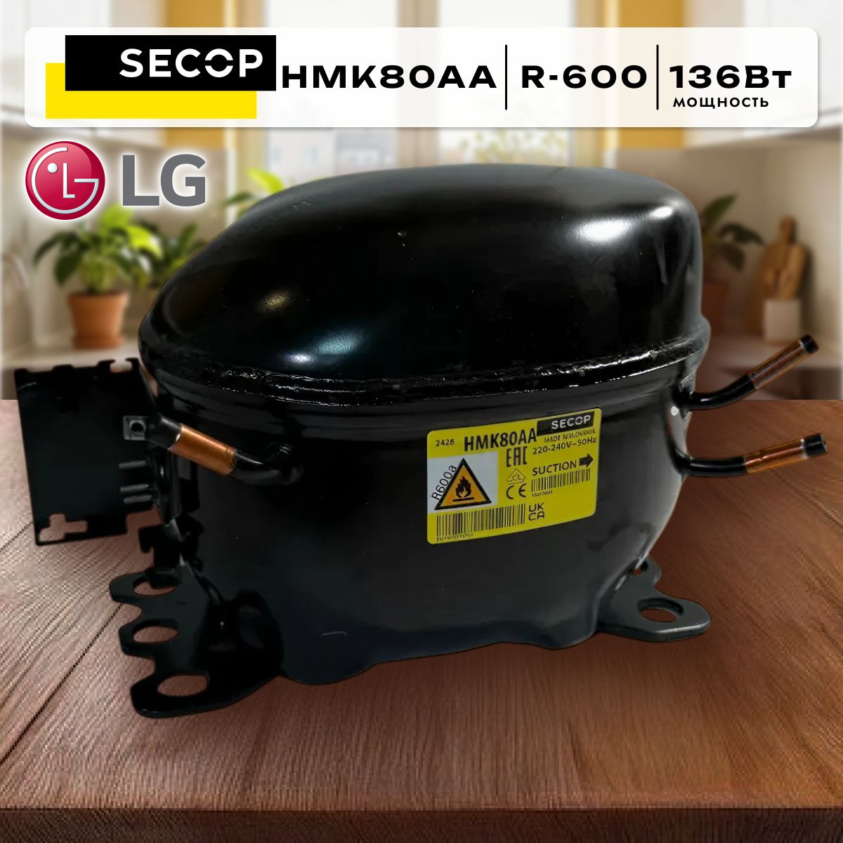 Компрессор холодильника LG HMK80AA SECOP низк.t (R-600 -23,3С 136Вт) C00378317