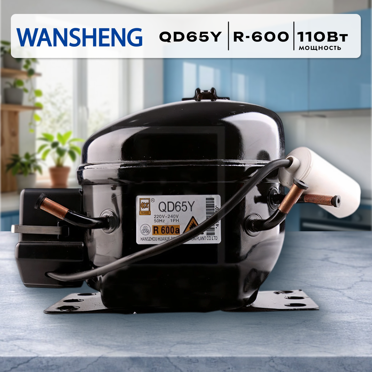 Компрессор Wansheng QD65Y — компактный и энергоэффективный агрегат для бытовых холодильников и морозильных камер. Работает на экологичном хладагенте R‑600 (изобутан), мощность составляет 110 Вт. Отличается тихой работой и надёжностью в эксплуатации.