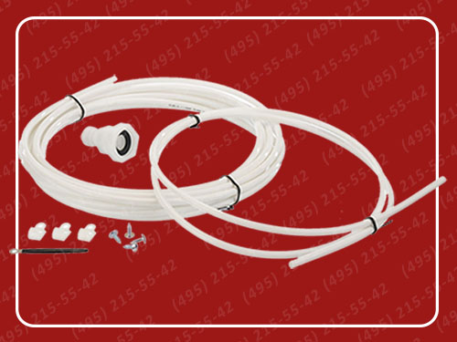 В наборе: шланг для подключения фильтра холодильника длиной 5 метров, шланг для подключения фильтра холодильника длиной 1,5 метра, переходник, крепёжные элементы.