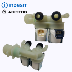 Электромагнитный клапан для стиральной машины Ariston (Аристон), Indesit (Индезит), 2 выхода, диаметр 10 мм,минифишка .