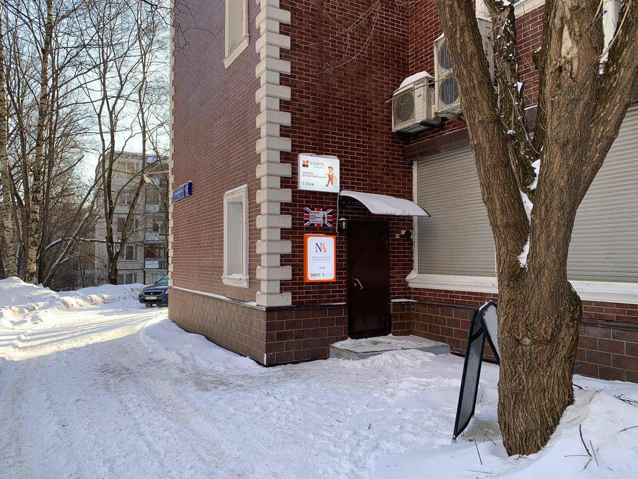 Слева вы увидите трехэтажное коричневое здание. Над входом будет вывеска Аэлита техсервис, запчасти для бытовой техники, 3 этаж.